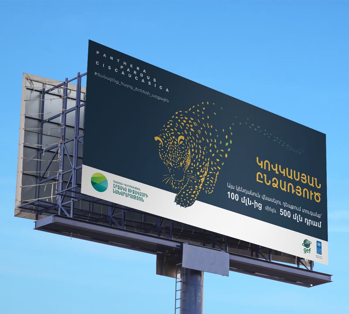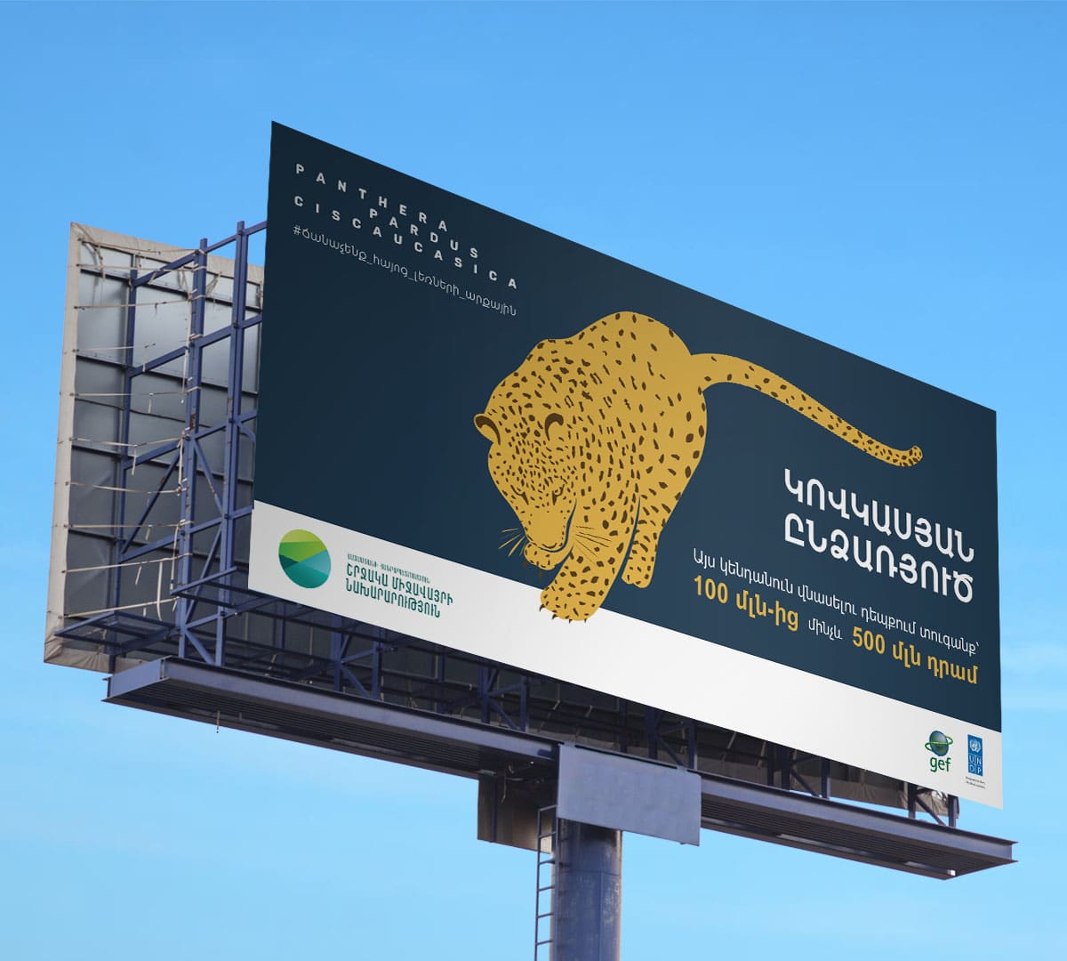 2019 | Plastic is becoming a huge ecological burden for the Earth and countries are trying to reduce its usage. We use plastics in every shape and form everyday. Armenia is not an exception. The Ministry of Environment in partnership with DEEM have launched an environmental awareness campaign for reducing the usage of plastic bags: one of the biggest plagues to the environment. To encourage people to use tote bags instead of plastic, our team has put all efforts in creating the right message. Eventually, DEEM came up with an outstanding message and design for an outdoor environmental awareness campaign. The visual for the outdoor ads showcases a stylish lady carrying a tote bag as a new trend. The billboards could be seen all over the country. Another biggest environmental challenge facing the country is the extinction of the Caucasian Leopard.