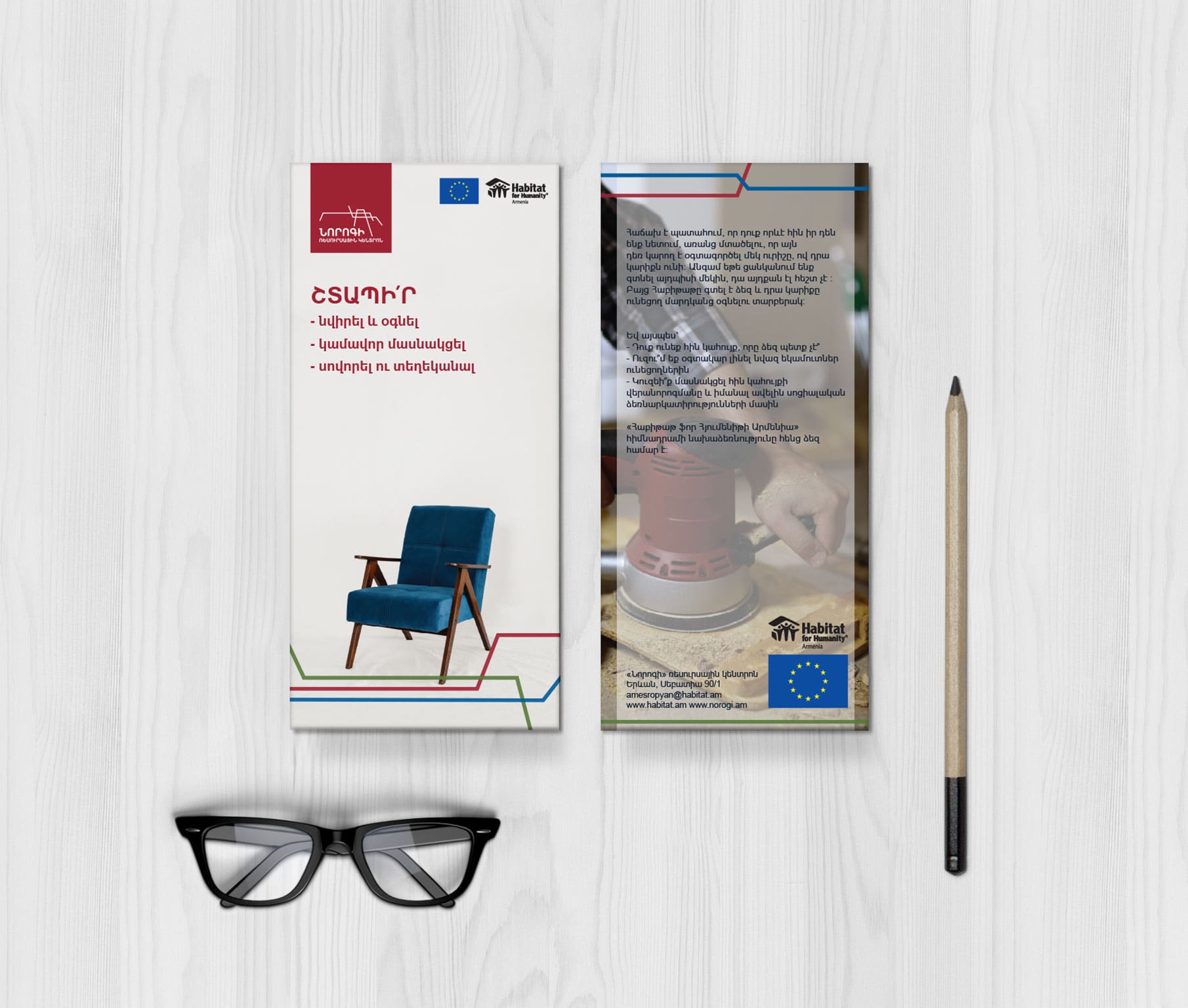 2018| Habitat Armenia has initiated a new project – a resource hub called Norogi Resource Center. The aim of the project was to improve low and middle-income families’ living conditions by providing them access to low-cost furniture, household goods, and building materials – new and used, remodeled, and refurbished. Therefore, Deem joined this amazing project with its full-service package. We provided the project with marketing and communication strategy, brand development, and digital digest. As well as interior and exterior branding, audio/video production, website design, and launch. Our team has thoroughly worked on the development of the visual concept, identity development, logo creation, naming, thought out the slogan. As well as produced audio and video materials for TV stations, radio stations, designed the uniform. In this short video, the audience gets to hear and see all about the Norogi Resource Center. It is a short tutorial on how the Centre works. It informs the audience that when people donate worn-out furniture the craftsmen repair it there. As a result, low-income families can get them with a discount. Norogi is a social enterprise that has been created by Habitat for Humanity Armenia. European Union is supporting it. Lastly, our team has developed a marketing and crowdfunding strategy for them. Our team has executed consulting sessions throughout the year, helping them understand the enterprise development.
